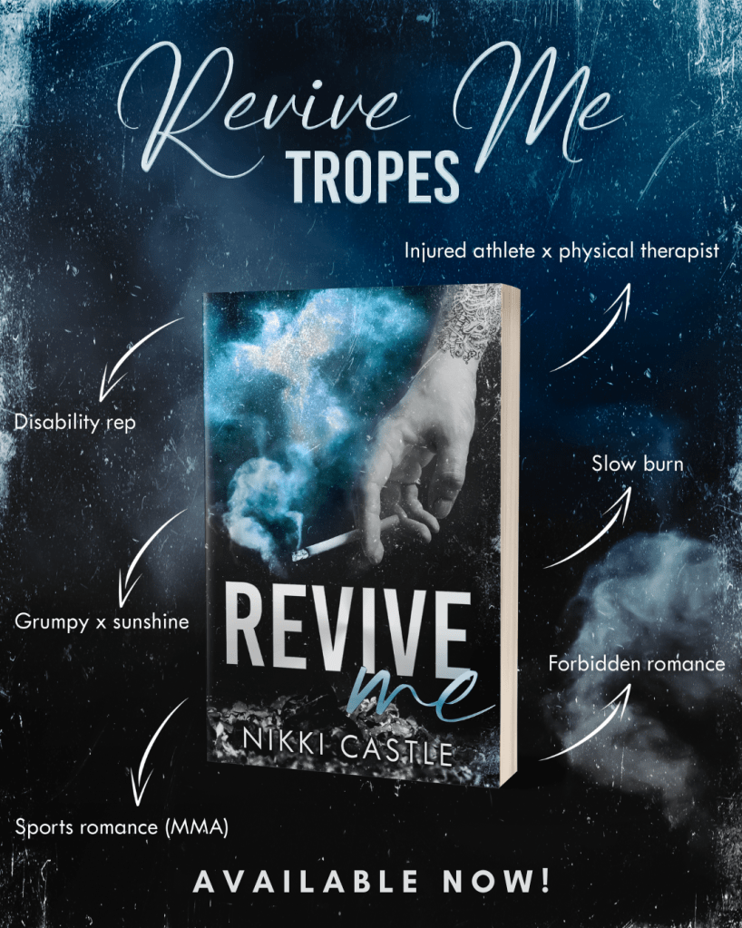 Revive Me follows Roman, an MMA fighter who is about to have the biggest fight of his career, and Liliana, who is a Physical Therapist. Roman ends up with a spinal cord injury during his title match, leaving him unable to walk or fight. Fighting has been all Roman has known since he was a teenager, and he can’t fathom a life without it; he doesn’t know who he is without MMA. Roman has been to many PTs, but 2 years after his injury, he ends up at Liliana’s workplace, and it is up to her to get through to Roman and get him back on his feet. However, this wouldn’t be a romance book without the romance, would it, and Roman and Liliana fall for each other, but it’s complicated due to Roman being her patient.