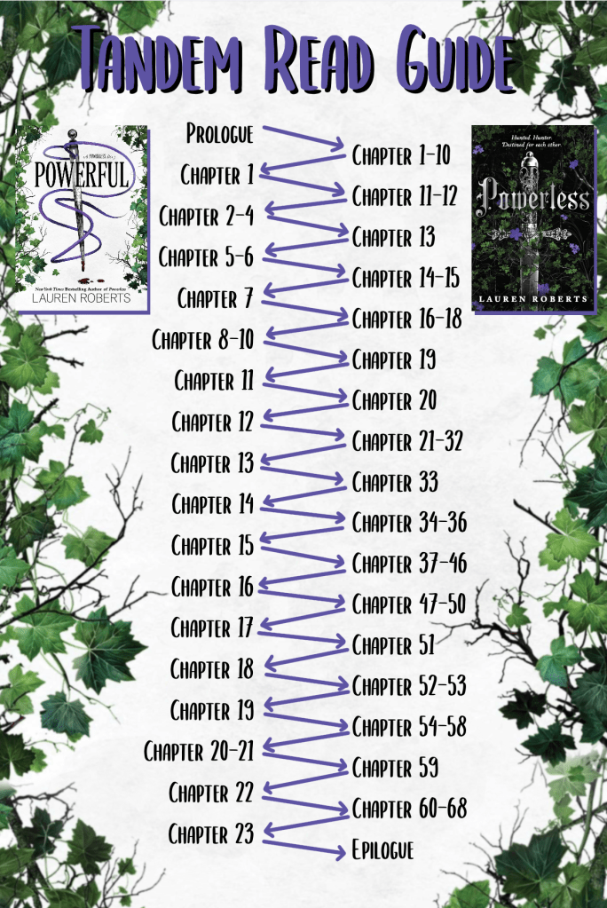 I, however, jumped in with both feet, and it felt so good to be back in Ilya, even if I knew it was my last trip. I know many people didn’t love Powerless, but I did, and I love the direction Lauren took the trilogy. I cried at the end of Powerless, and yes, it doesn’t take much to make me cry, but still, I did. I also did the tandem read of Powerless and Powerful, and I would personally say that is the best way to read them. If you want the details of the tandem, read. I have a picture you can download. I used it as a bookmark.