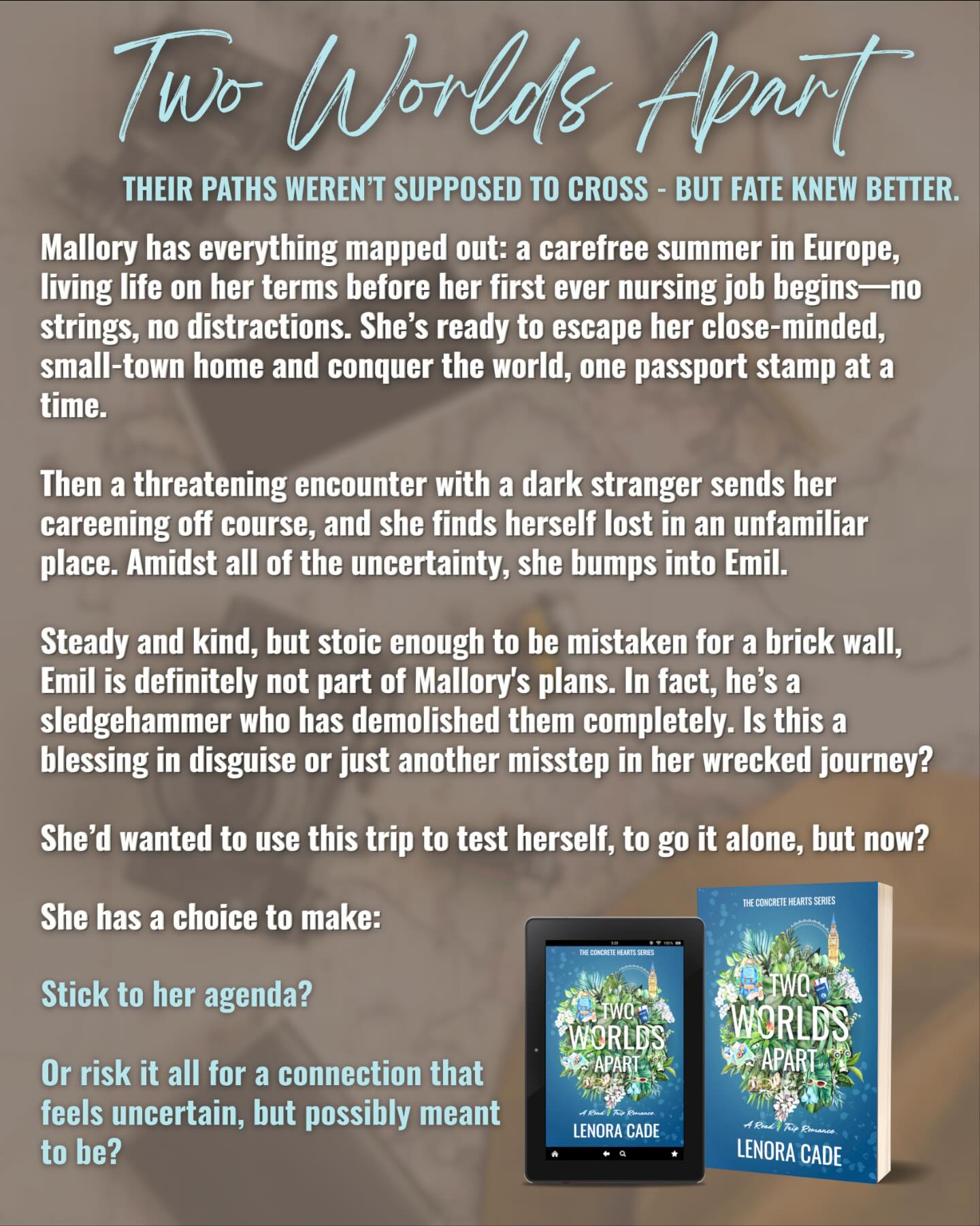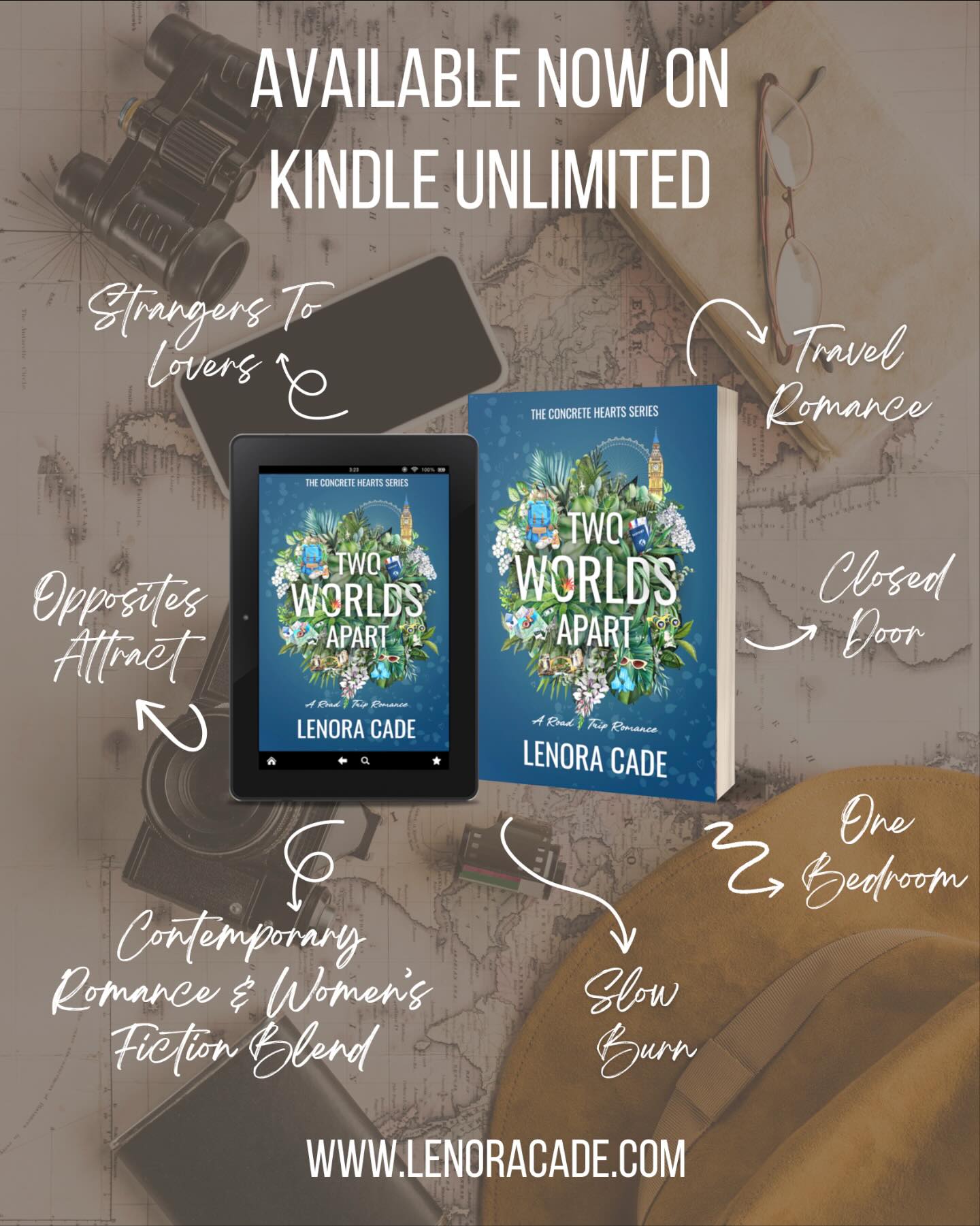 Lenora Cade is a romance author who likes sneaking a hefty dose of reality into her love stories, but still graces her readers with a happily ever after. Her book, Two Worlds Apart, is available on Kindle Unlimited, and this story borders on women’s fiction; it includes themes of coming of age, self-reliance, and questioning one’s own disbeliefs.